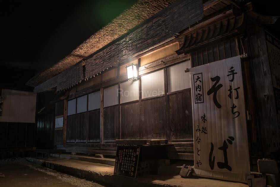 📷 夜の大内宿とねぎそばを出す「みなとや」さん