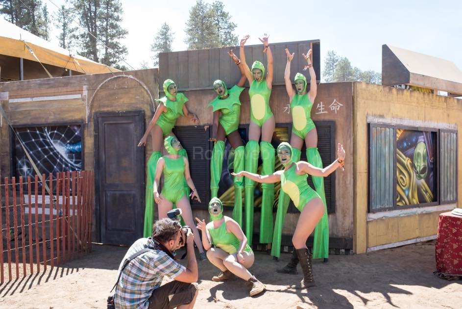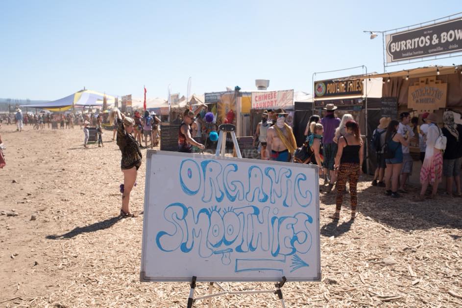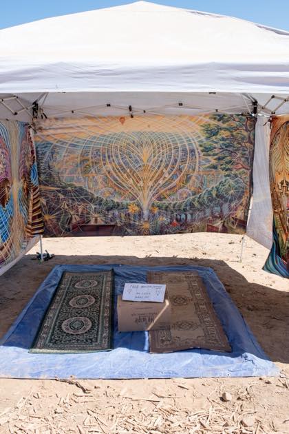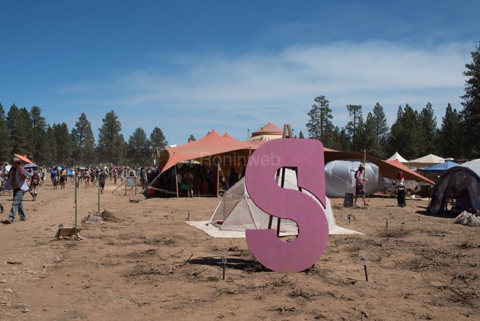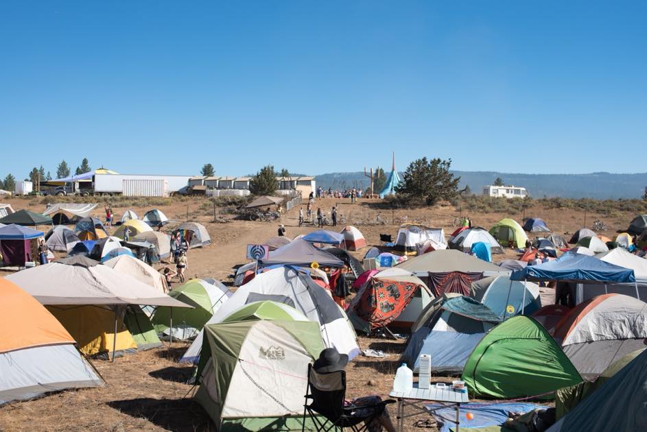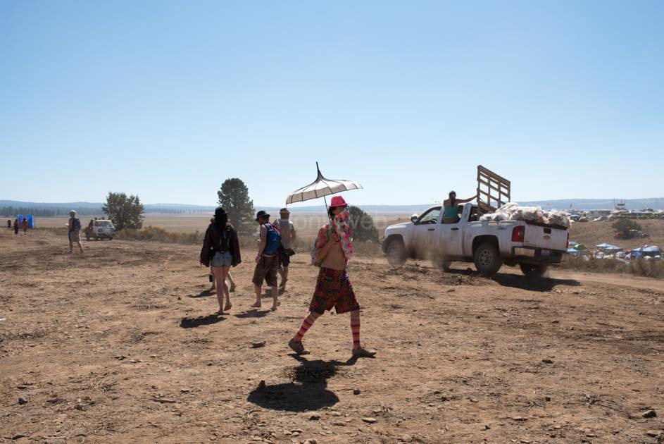 広大な国立公園の乾燥した大地に、音楽ステージ、アート作品、フードエリア、キャンプサイトが点在しています。マップを手にしても、徒歩では回り切れないほどの規模。