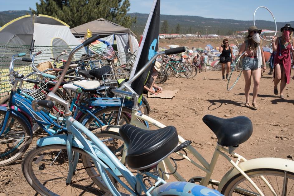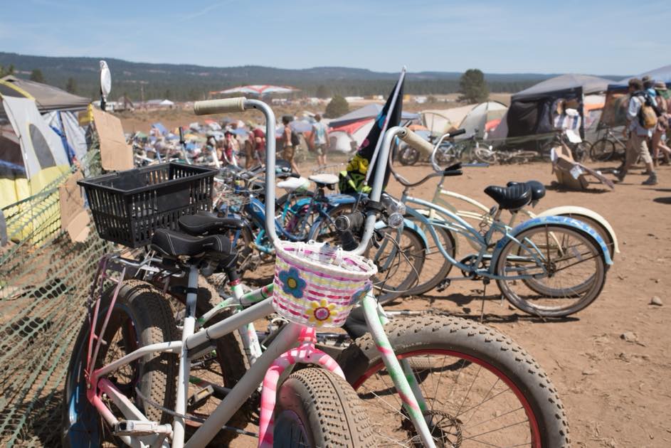 フェスティバル仕様にカスタマイズされたお洒落な自転車、屈強なマウンテンバイク、子供が乗るかわいいアメリカンな自転車——眺めているだけで飽きません。