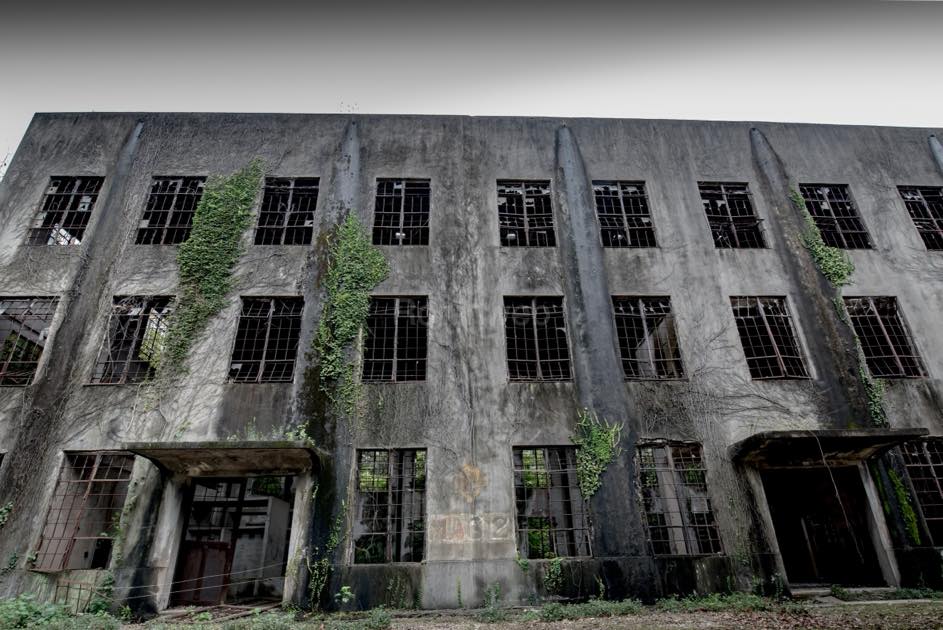 島に上陸してまずトンネルをくぐると、3階建ての発電所跡地が現れます。