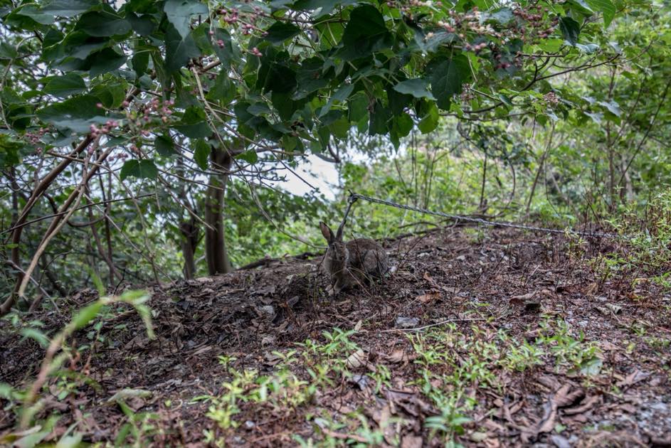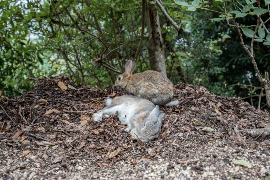 歩道のそこかしこ、廃墟の中、木陰——どこにでもうさぎがいます。