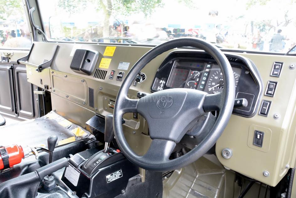 隊員の方のお話によると訓練後は泥まみれになりそのまま車内を水洗いするそうで必要ない設備とのことでした。