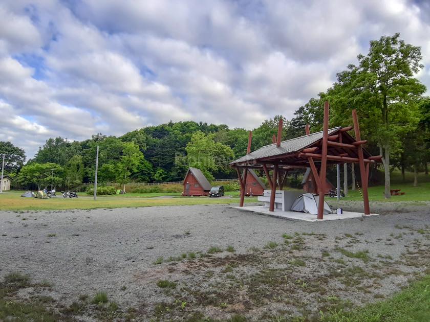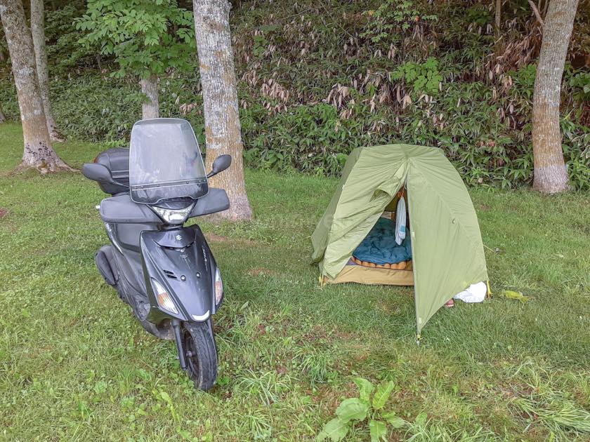 テントを設営していると、60代ぐらいのライダーが話しかけてくれる。しかし、自分語りが多くちょっと辟易…。後に道中他のライダーとも親しくなるが、このような場面が実は多いらしい。頼んでないのに色々と教えてくれる北海道ライダーの”パイセン”が結構いるらしい。「何回目?初めてなの?」など…。このような絡みが苦手な好きなライダーも、苦手なライダーもいろいろいるようだ。