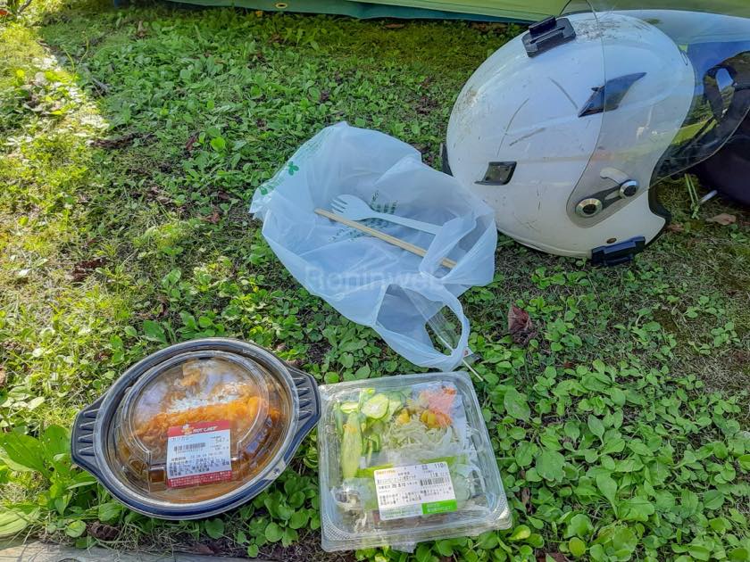 セコマでご飯を買ってキャンプ場でノンビリと夕日を見ながら昼夜兼用ご飯。