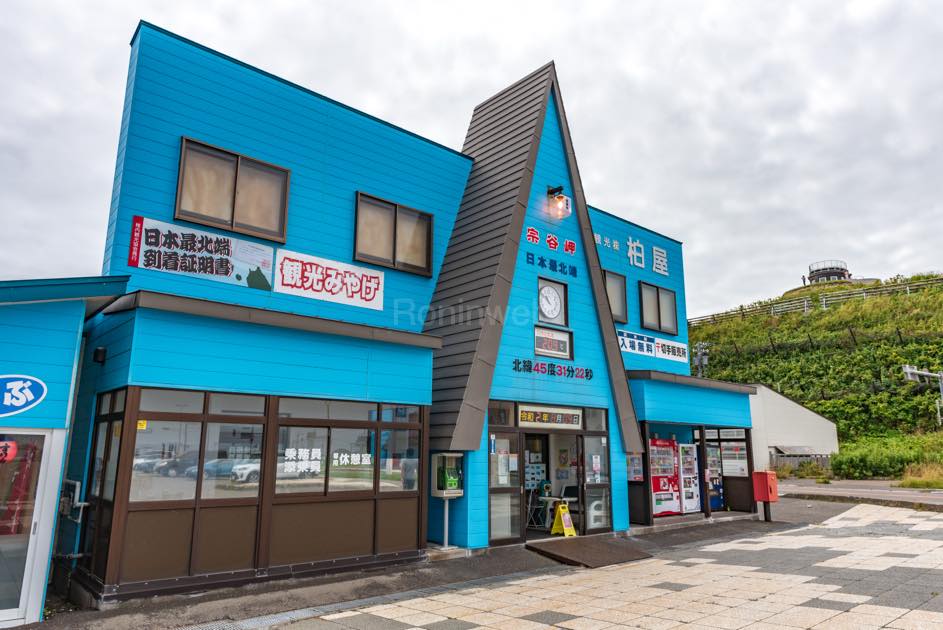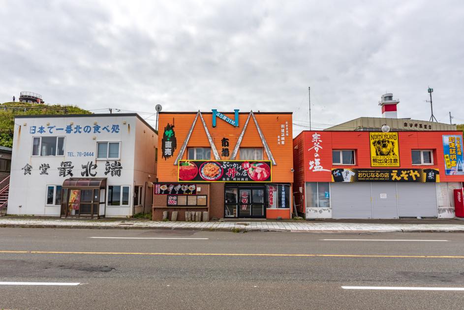 宗谷岬を背にすると、道路の反対側に、お土産物屋や飲食店が並ぶ。