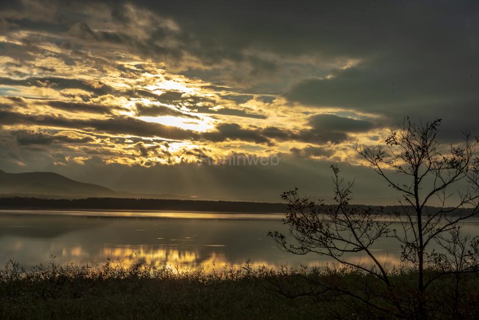 (コムケ湖に沈む夕日をキャンプ場利用者と一緒に眺める)
